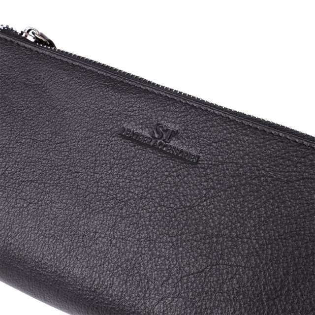 Практичный кожаный кошелек на три отделения ST Leather 23111 Черный, Київ