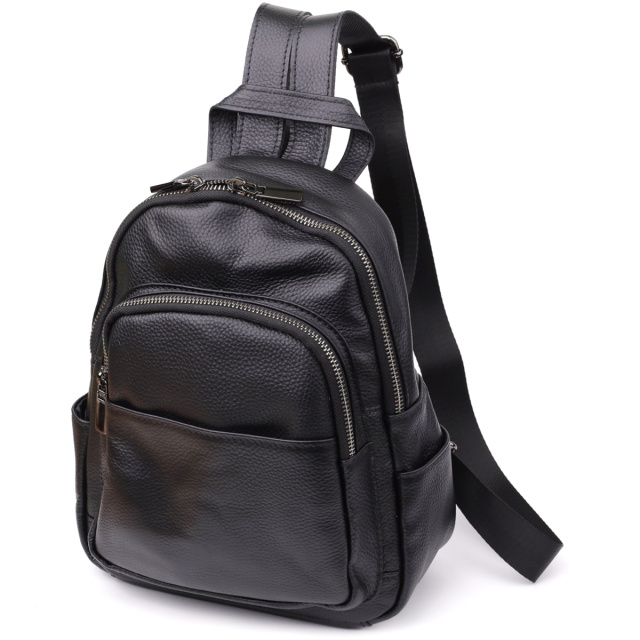 Женский кожаный рюкзак выполнен в лаконичном дизайне и отлично подходит для повседневного использования. Модель оснащена одним основным отделением на молнии, внутри которого расположены два кармана: один на молнии и один открытого типа — для удобной организации вещей.