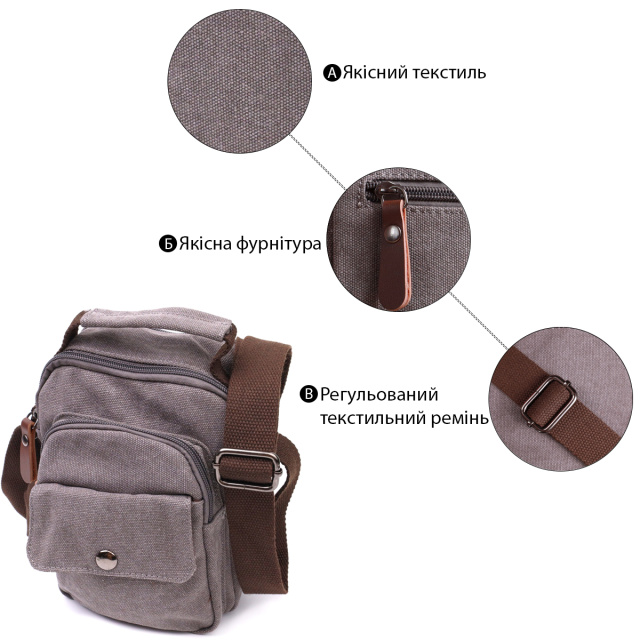 Небольшая мужская сумка из плотного текстиля Vintage 22217 Серый, Київ