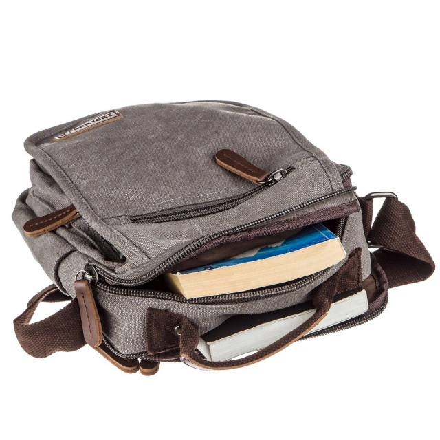 Универсальная текстильная мужская сумка на два отделения Vintage 20198 Серая, Київ