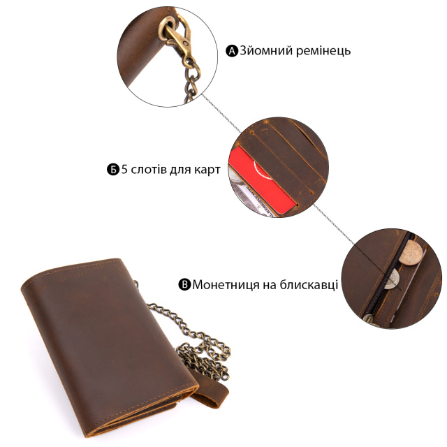 Портмоне унисекс с цепочкой матовое Vintage 20439 Коричневое, Київ