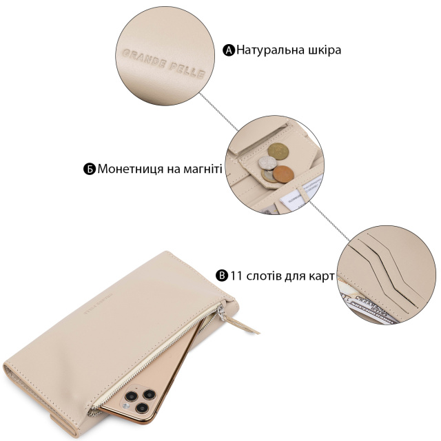 Женский классический кошелек GRANDE PELLE 11521 Бежевый, Київ