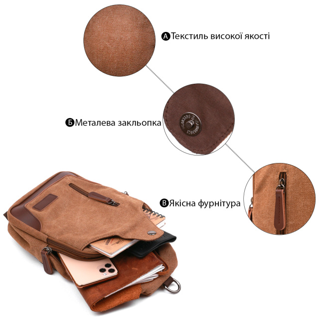 Практичная мужская сумка через плечо Vintage 20389 Коричневый, Київ