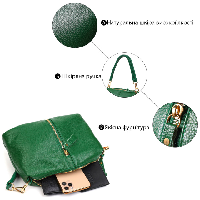 Молодежная сумка через плечо из натуральной кожи 22097 Vintage Зеленая, Київ