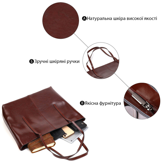 Практичная сумка шоппер из натуральной кожи 22103 Vintage Коричневая, Київ