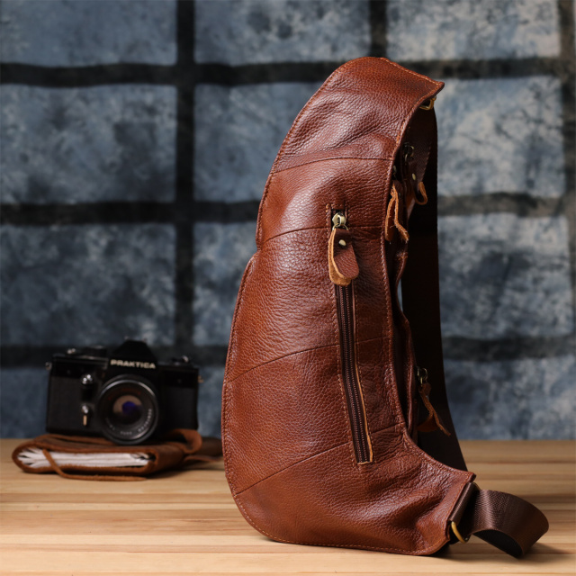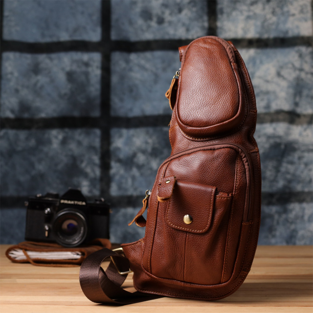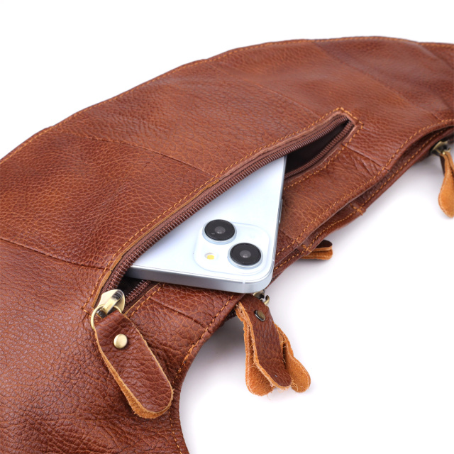 Светло-коричневая кожаная сумка через плечо — это надежный и стильный спутник для активной городской жизни и деловых встреч.