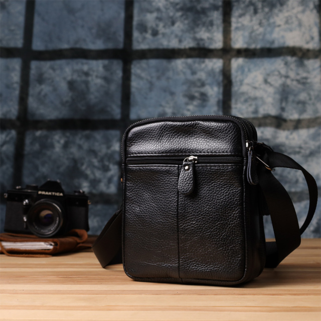 Мужская сумка через плечо из натуральной кожи — удобный и стильный аксессуар для повседневного использования. Компактная, но вместительная модель идеально подойдёт для городского ритма и деловых встреч.