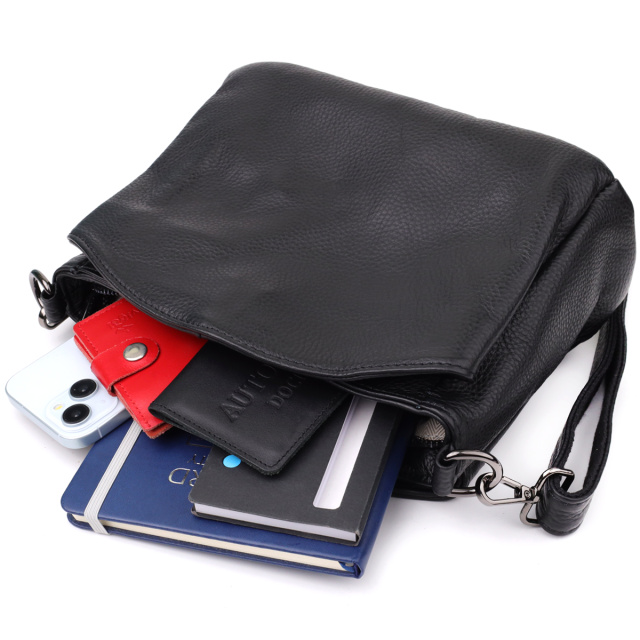 Сумка на плечо из натуральной кожи для женщин Vintage 23007 Черный, Київ