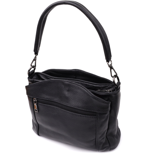 Эта многофункциональная сумка из натуральной кожи в классическом черном цвете станет незаменимым аксессуаром для современной женщины. Ее универсальный дизайн и продуманная внутренняя организация делают модель идеальной как для повседневного использования, так и для деловых встреч или поездок.