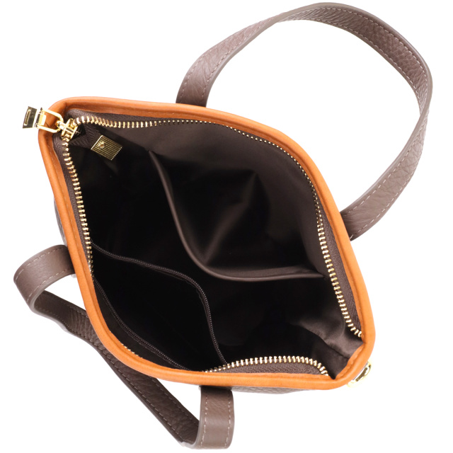 Сумка имеет одно основное отделение, которое закрывается на молнию, обеспечивая надежную защиту содержимого. Внутри расположены два кармана: потайной на молнии — для хранения ценных мелочей, и открытый — для предметов, к которым нужен быстрый доступ.