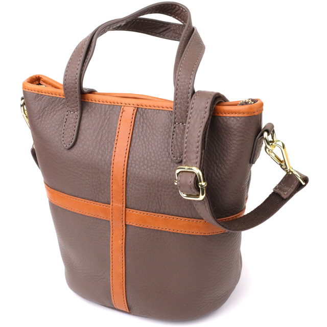 Женская кожаная сумка с коричневой вставкой на лицевой стороне Vintage 22999 Бежево-серый, Київ