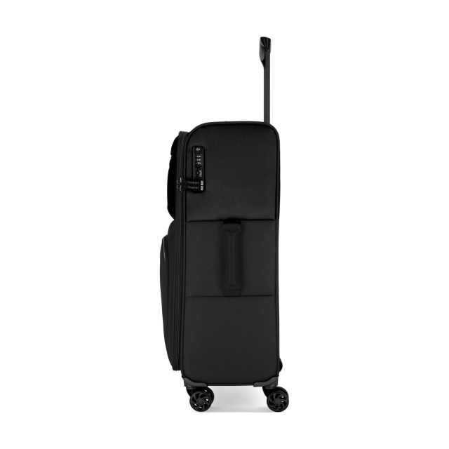 Для безпеки багажу валіза обладнана вбудованим кодовим замком. Завдяки колесам, що обертаються на 360 градусів, валіза плавно рухається в будь-якому напрямку, а зручна телескопічна ручка та додаткова ручка збоку полегшують транспортування.