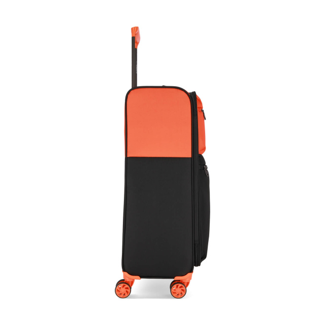 Для безпеки багажу валіза обладнана вбудованим кодовим замком. Завдяки колесам, що обертаються на 360 градусів, валіза плавно рухається в будь-якому напрямку, а зручна телескопічна ручка та додаткова ручка збоку полегшують транспортування.