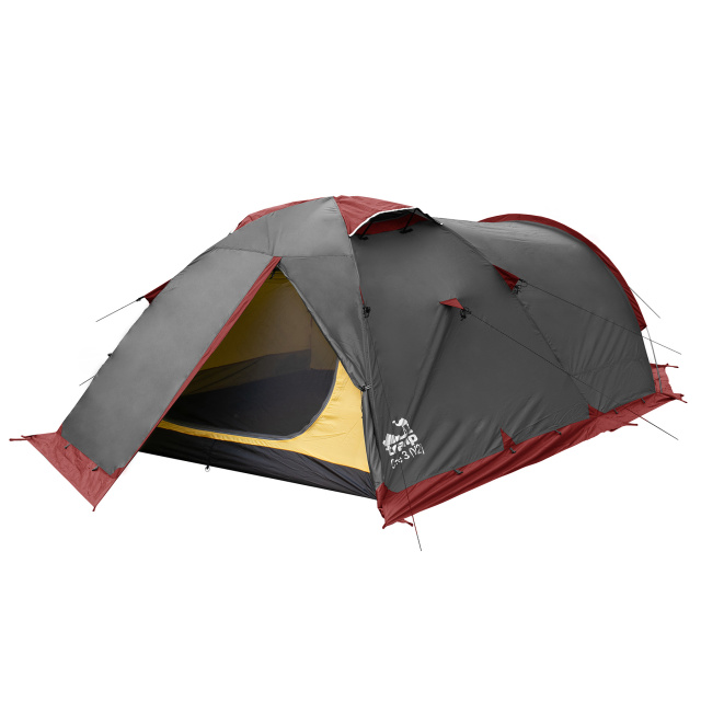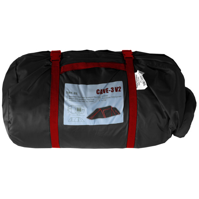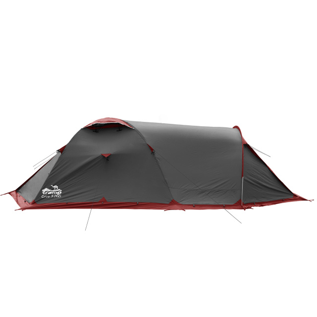Намет Tramp Cave 3 (V2) - тримісний намет експедиційного класу з 3-ма входами – 2 з тамбура, один зі зворотної сторони, з великим тамбуром для зберігання спорядження чи організації кухні.