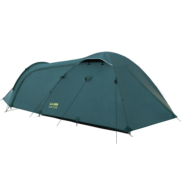 Универсальний туристичний намет з 3-ма входами (2 через тамбур - боковий і торцевий, і один зтильноїсторони), а також