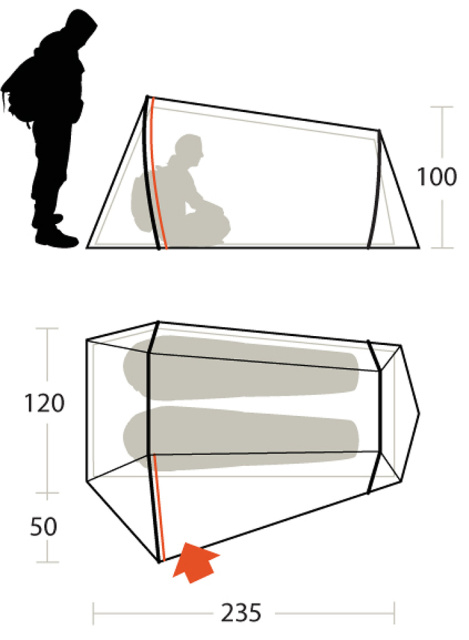 - Основна перевага тунельного намету з бічним розташуванням тамбура - мінімальна установча площа при максимально ефективному використанні її внутрішнього об'єму. Крім того, така конструкція легша за інших і вимагає мінімум часу на встановлення.