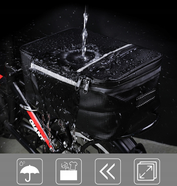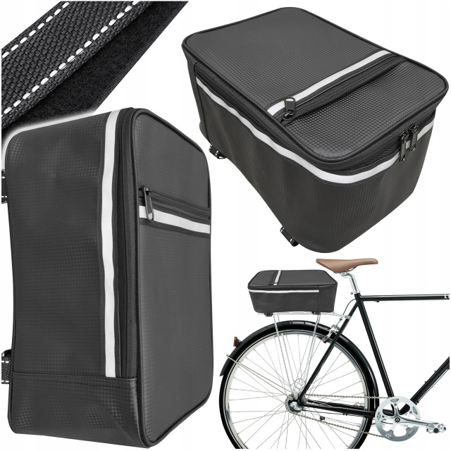 Виготовлена з водонепроникного матеріалу, легко кріпиться на багажнику наших за допомогою 2 ременів на липучці ).
