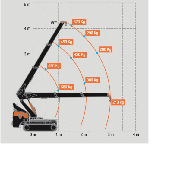 Вантажопідйомність міні-крана Bg Lift M060 - 580 кг