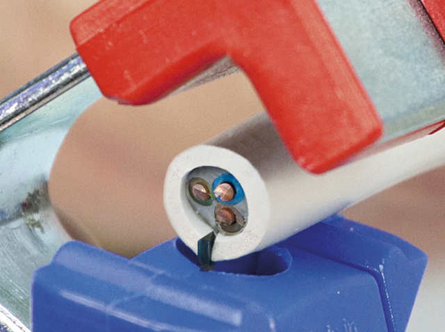За допомогою регулюючого гвинта наприкінці інструменту проводиться плавне безступінчасте виставлення глибини різу, що запобігає пошкодженню ізоляції жил проводів. Всередині інструменту лезо-ексцентрик, що обертається, автоматично повертається для поперечного і поздовжнього різу.