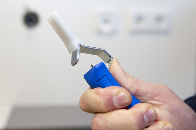 За допомогою регулюючого гвинта наприкінці інструменту проводиться плавне безступінчасте виставлення глибини різу, що запобігає пошкодженню ізоляції жил проводів. Всередині інструменту лезо-ексцентрик, що обертається, автоматично повертається для поперечного і поздовжнього різу.