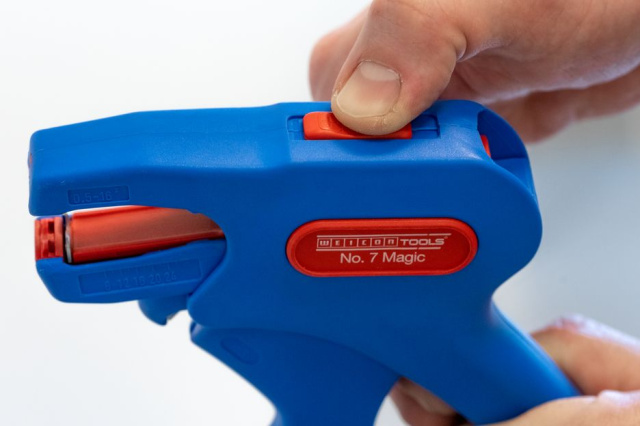 З спеціальним інструментом для зняття ізоляції з поширених гнучких і жорстких круглих кабелів від 0,5мм2 до 16мм2 (20-6 AWG). А також зняття ізоляції з 2-х жильних плоских кабелів з ПВХ ізоляцією розміром від 0,75 мм2 до 1,5 мм2 (18-15AWG). В інструмент вбудований бічний різак для дротів діаметром до 3,0 мм.