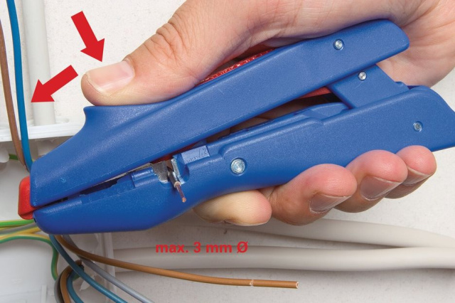 - Вбудовані леза для зняття ПВХ-ізоляції дротів можна замінити на нові (арт. 51953020)