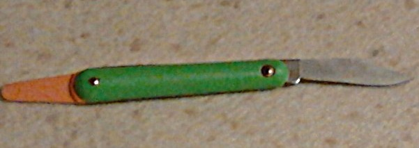Окулювальний ніж розкладний з пластмасовою рукояткою та гладкою гумовою платівкою. Ніж застосовується для щеплення рослин. Сталь японська вищої якості 440А, з якої виготовлені різальні леза, а також термообробка цих деталей, забезпечує їхню виняткову міцність та відмінні різальні якості.